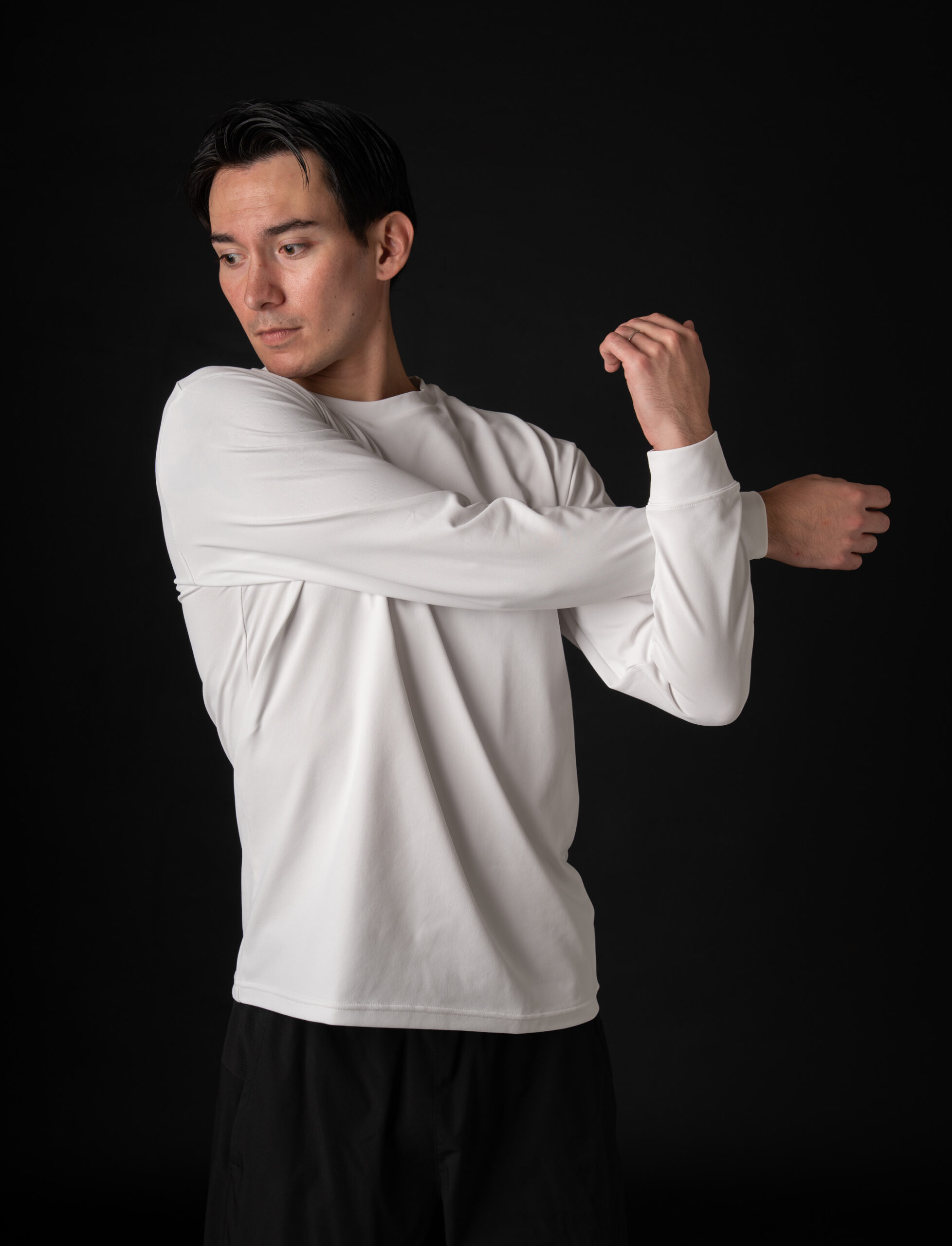 東レの汗マネジメント素材「フィールドセンサー®EX」に加え、東レ×JAXA共同開発消臭技術などを用いた素材「MOON-TECH®」を採用した長袖の機能性ウェアです。