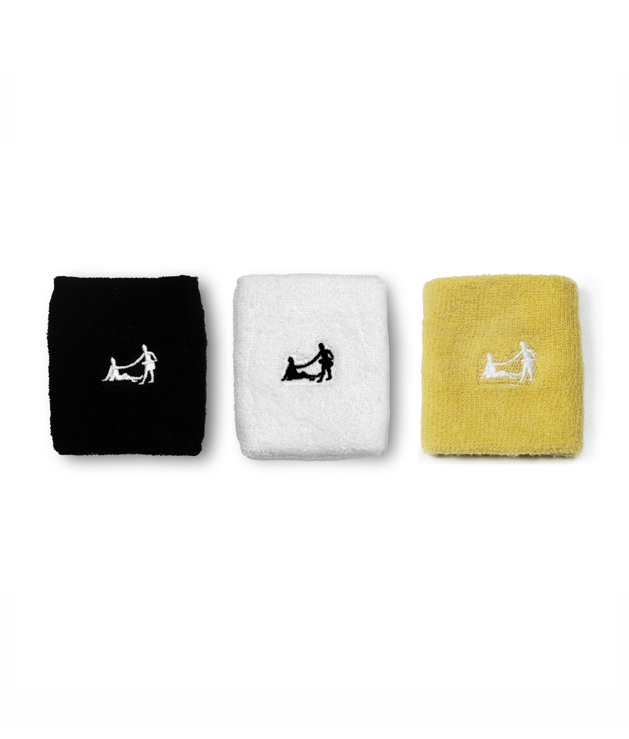 Mサイズのテニスリストバンド3個セット(ブラック&ホワイト&イエローゴールド)。